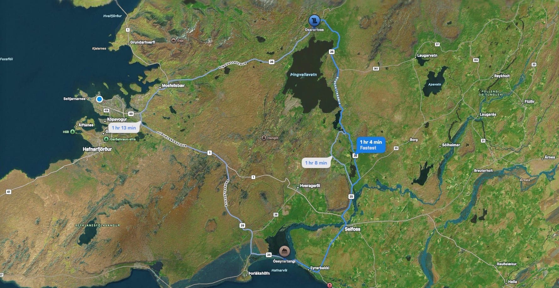 Driving distance from Þingvellir: 60 minutes / 64 kilometres