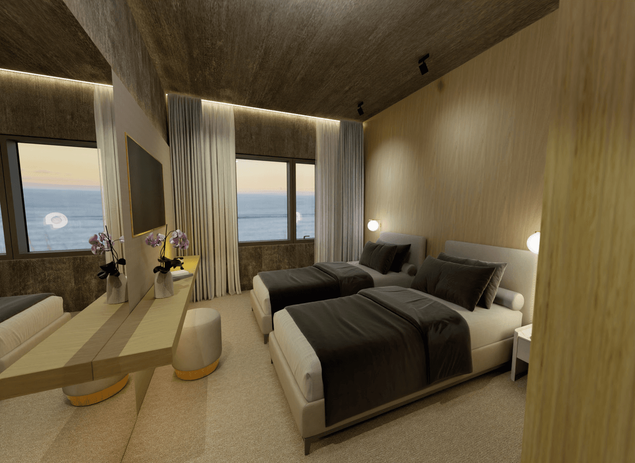 Designed with well-being in mind, each room includes a spacious walk-in shower with Comfort Zone toiletries, high-quality Quagliotti bed linens, Garnier-Thiebaut towels, and soft flooring that enhances the warm and inviting atmosphere.