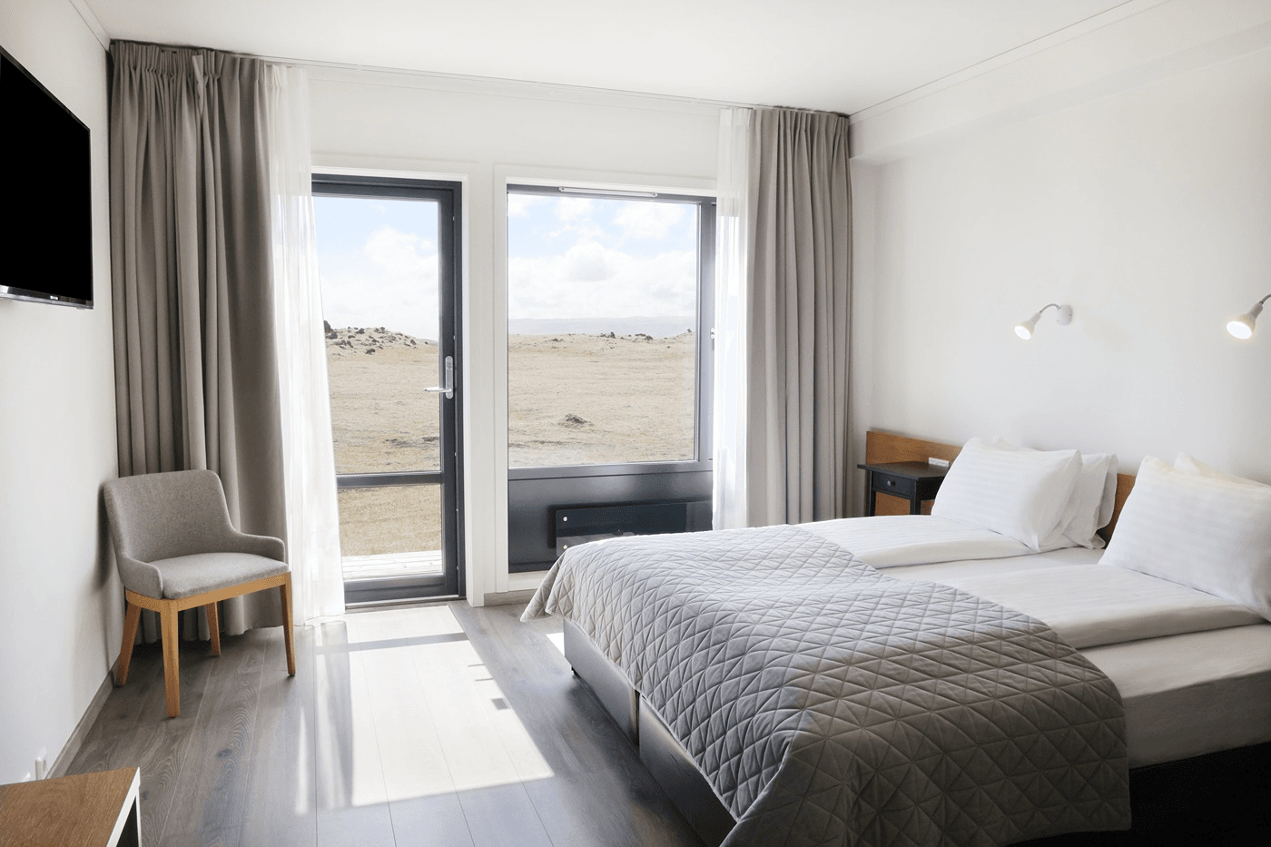 At Fosshotel Núpar we offer quality rooms with modern furnishing, large windows, and a small backyard porch, making you even more connected to nature. With all the amenities you look for in a 3-star hotel, just sit back and enjoy yourself with the beautiful scenery right at your doorstep.