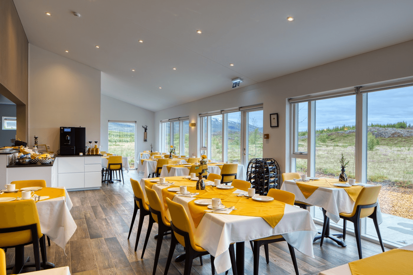Hotel 1001 nott is a family-owned luxury hotel, beautifully situated in a quiet area by Lake Lagarfljót, approximately 4 km (3 miles) from Egilstadir. The hotel offers comfortable, large rooms (22m2), each with a private entrance from the hotel garden. The rooms are beautifully decorated with comfortable furniture, double or twin beds, a private bathroom with a shower, and a mini-bar. There is free wi-fi in all rooms.
