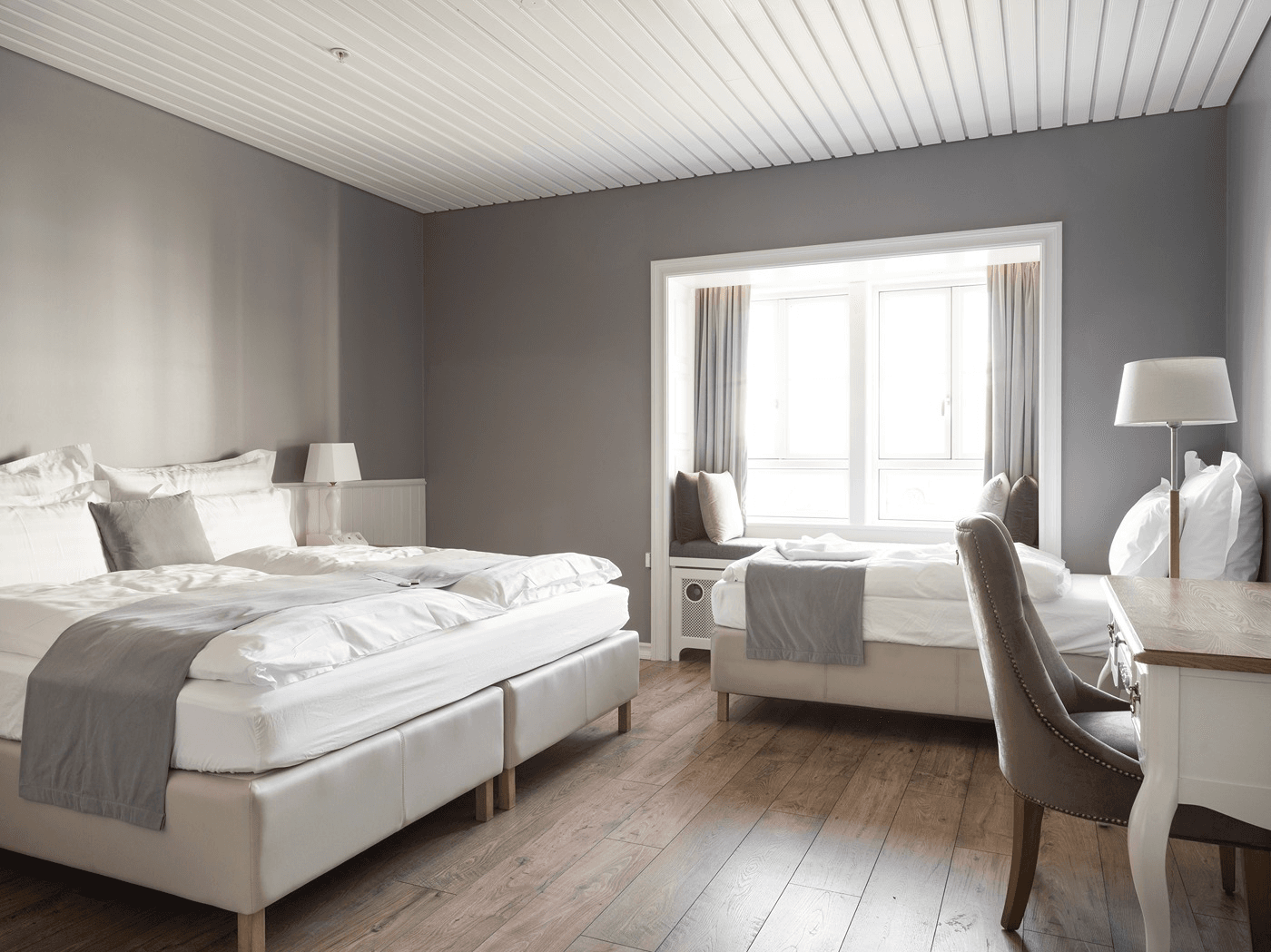At Siglo Hotel we strive to offer our guests a relaxing environment with a classic and romantic design. All our rooms have views over the beautiful surrounding mountains and marina and from the cozy windowseat you can watch life go by in this quiet little haven in north Iceland. The rooms are spacious and decorated with pictures from Siglufjords Photo Museum spanning its history and culture. All our guests have access to our outdoor spas and sauna